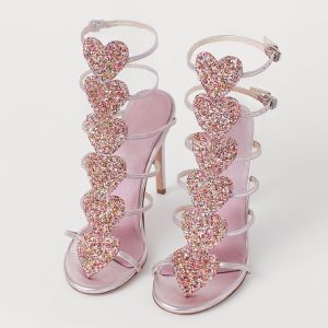 Silver Metallic Open Toe Buckle Glitter Heart Gladiator Sandals