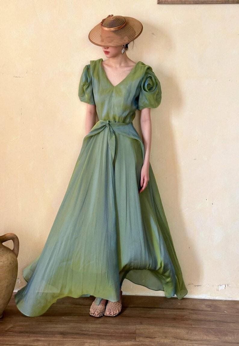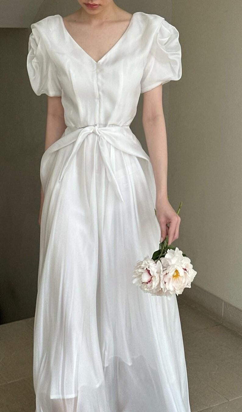 Elegant Puff Sleeve White Dress Minimalist Bridal Wedding