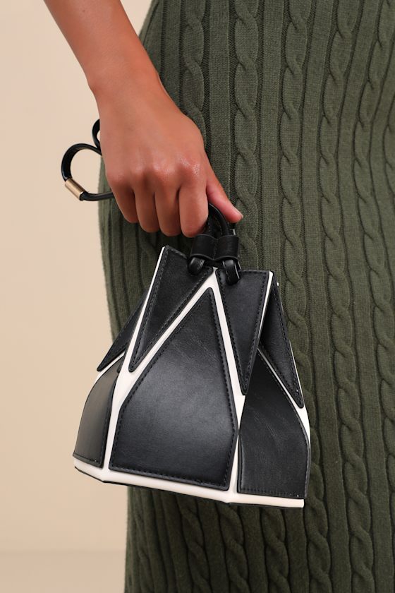 Elevate your accessories game instantly with the Lulus Unparalleled Style Black and White Color Block Bucket Bag! Smooth vegan leather, in contrasting hues of black and white in a geometric-style design, shapes this structured bucket bag with a flat bottom silhouette and a unique drawstring top that cinches with slender, twin tote handles. A slender, detachable shoulder strap allows for various styling options, while the roomy interior keeps all your must-have essentials safe and sound! Gold hardware.